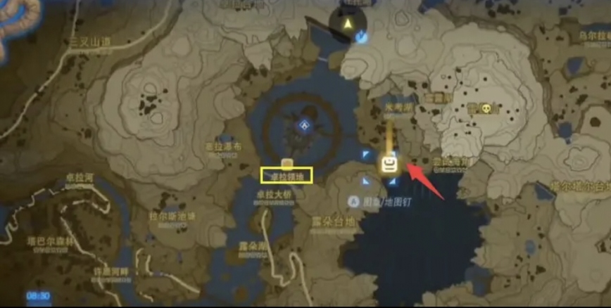 1.水神兽的位置在卓拉领地的东侧,箭头指向的地方