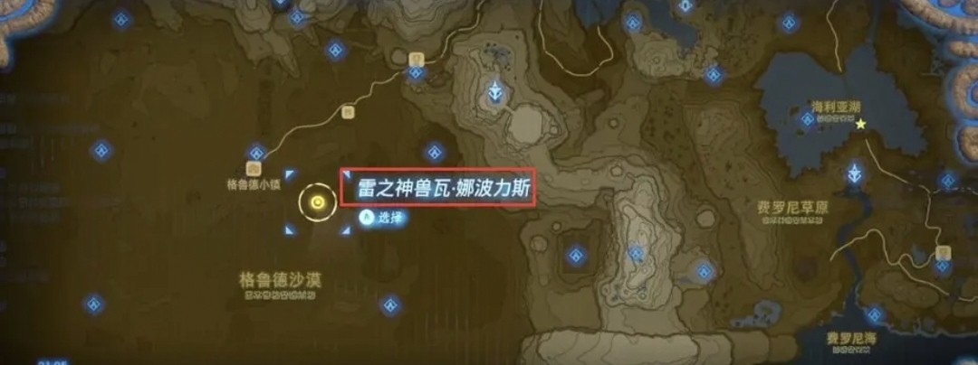 1.雷神兽在格鲁德沙漠,地图上的位置如图所示